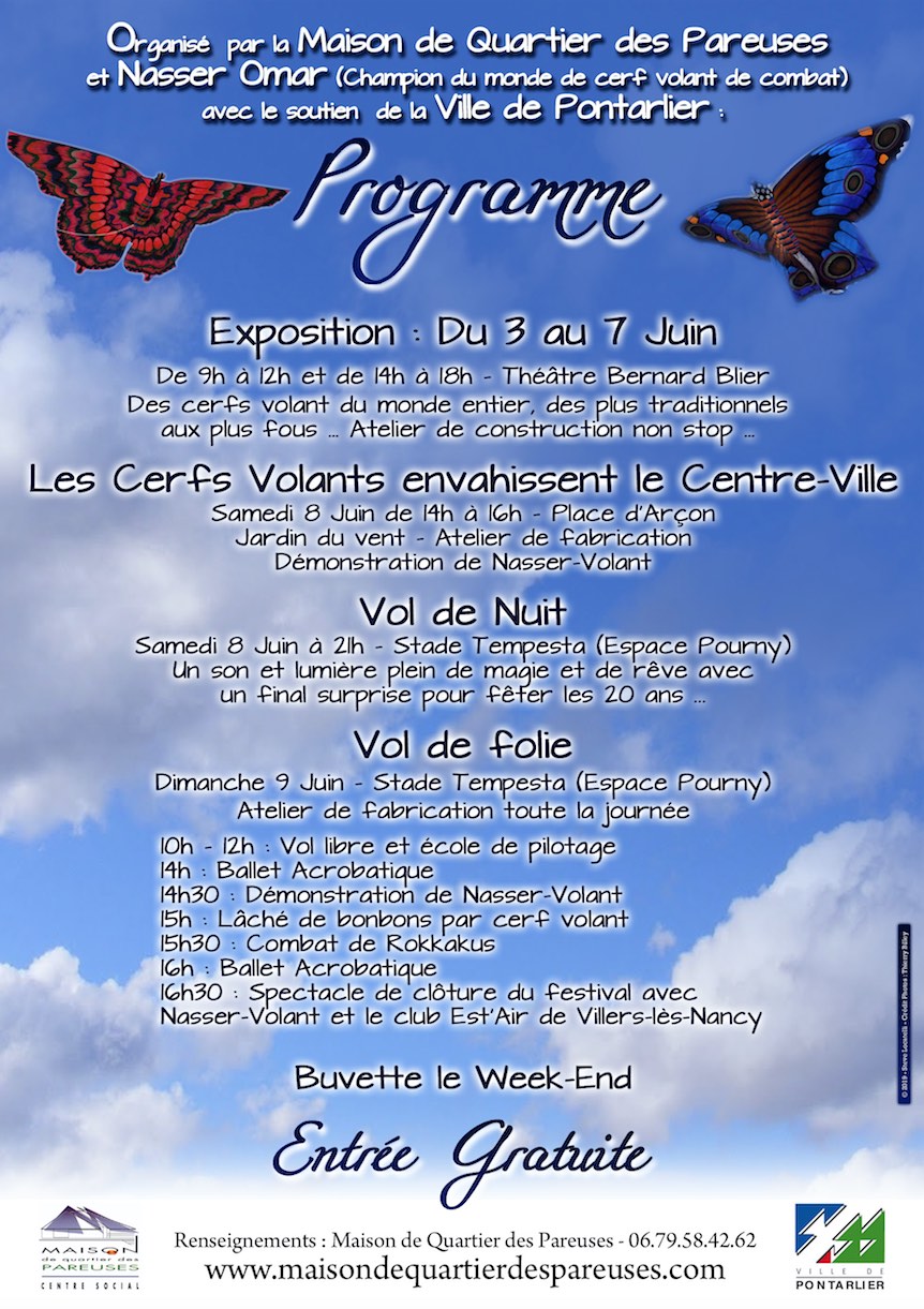 Organisé par la Maison de Quartier des Pareuses, ce festival du cerf-volant accueille Nasser Omar, champion du monde de cerf-volant de combat. A cette occasion, la manifestation fêtera ses 20 ans avec de nombreuses surprises.