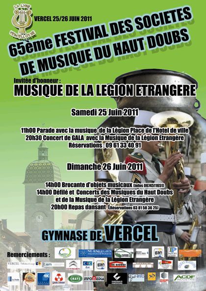 Pour ce 65e Festival des sociétés de musique du Haut-Doubs, plus de 500 musiciens répartis en 9 harmonies seront au rendez-vous : L’Union Musicale de Fournet- Blancheroche, La Lyre Mortuacienne de Morteau, L’Avenir de Damprichard, L’Union musicale des Fins, L’espérance du Sauget de Gilley, L’Echo du Vallon de Grand’Combe-Chateleu, L’Echo de la montagne de Montlebon, L’Union et progrès de Villers-Le-Lac et évidemment La Lyre Vercelloise l’une des plus anciennes associations de Vercel puisque son origine remonte à 130 ans !