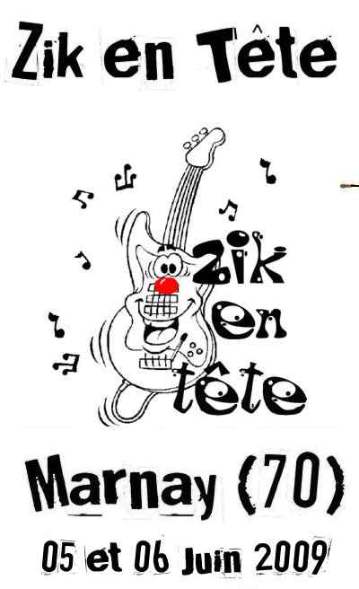 6ème édition, qui aura lieu le 5 et 6 juin à Marnay (70) Ce petit festival, qui a tout d’un grand, a acquis en 6 ans, une certaine renommée dans le milieu de la musique actuelle pour ainsi devenir un événement de plus en plus important sur la région de Marnay, Gray, Dole, Vesoul et Besançon, avec toujours la même volonté de faire découvrir au public des nouveaux talents régionaux et des artistes nationaux peu connus mais en pleine ascension. Zik en Tête est reconnu pour son esprit d’originalité, par sa programmation éclectique de qualité, par sa déco insolite et par sa convivialité, par la sympathie des 60 bénévoles qui le font vivre et par sa véritable dimension humaine.