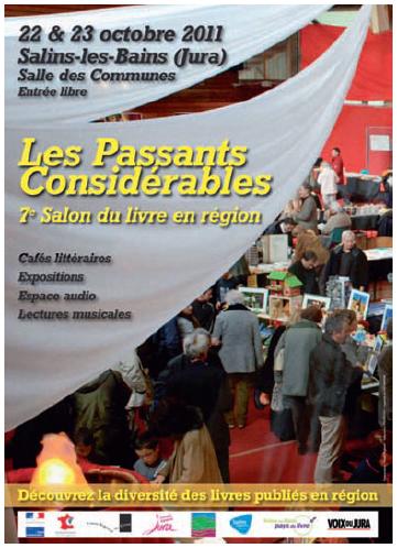 Le 7e Salon du Livre en Région « Les Passants Considérables » bénéficie du soutien du Ministère de la Culture / DRAC Franche-Comté, de la Région Franche-Comté, du Conseil Général du Jura, de la Communauté de Communes du Pays de Salins-les-Bains et de la ville de Salins-les-Bains.