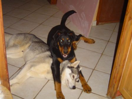 « ll s’agit d’une femelle beauceron (noir et feu) et d’un mâle Husky (blanc et gris foncé), ils sont tous les deux identifiés par une puce électronique que vous pouvez faire lire par un vétérinaire c’est Gratuit…