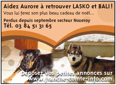 Leur collier ont peut-être été perdu. Ils sont recherchés dans le Doubs et le Jura. Si vous les avez aperçus appelez-nous et si vous les avez chez vous appelés également ils ne sont pas abandonnés on les recherche, vétérinaires, SPA, gendarmerie ont leur signalement… Merci à tous de votre aide ». Aurore