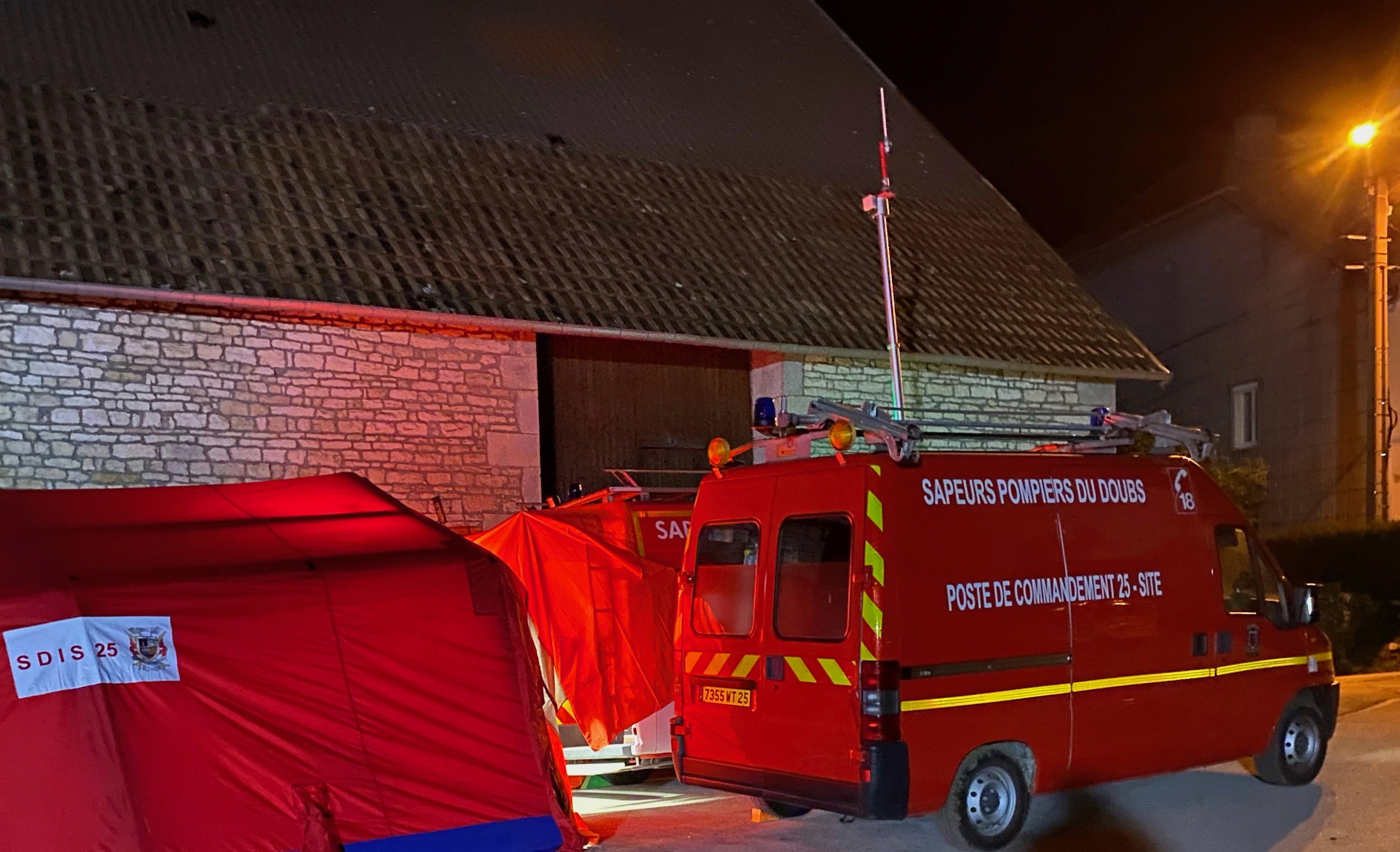 Un poste de commandement des pompiers du Doubs est déployé à Malbrans avec 17 sapeurs-pompiers sur place au plus fort de l’intervention.