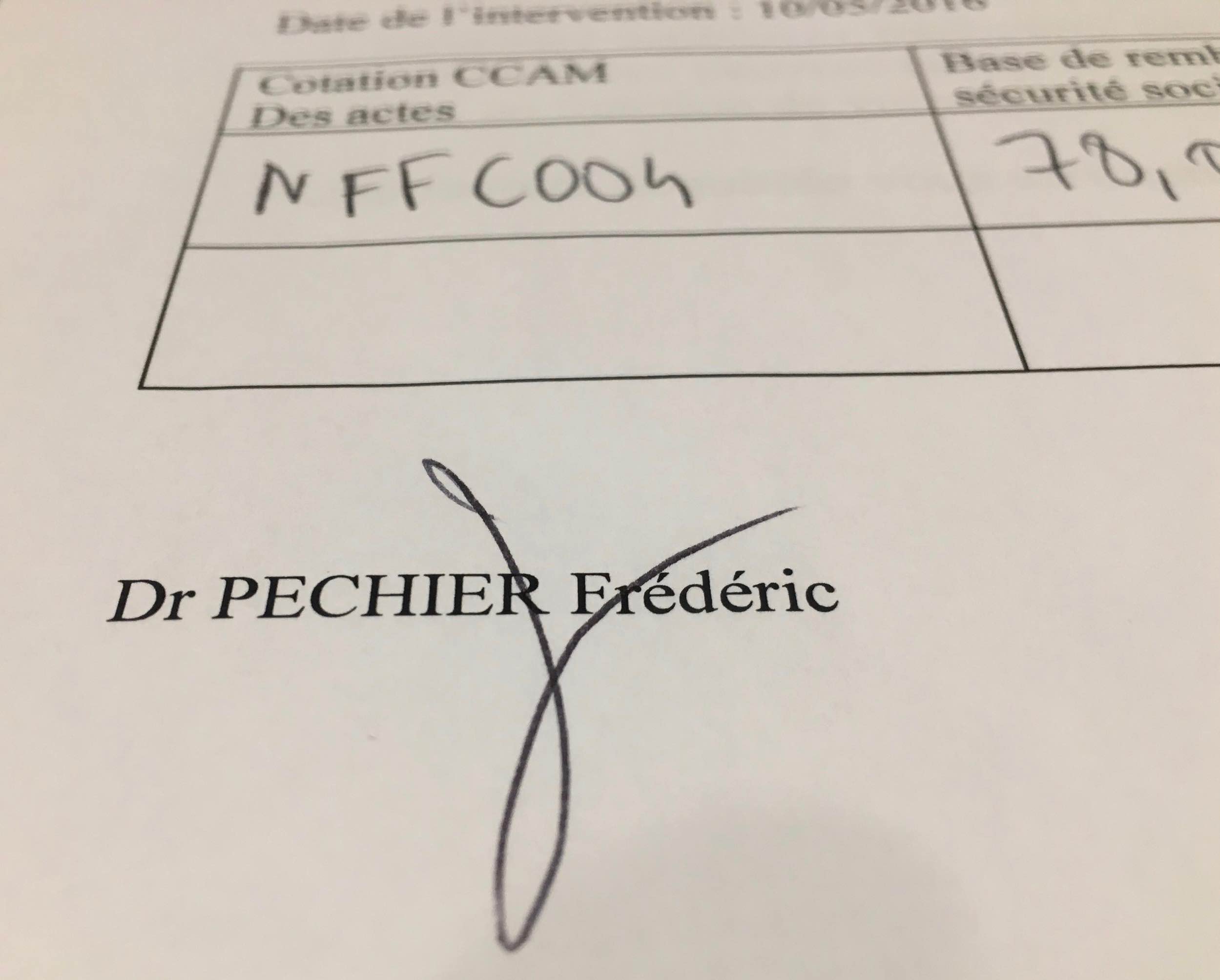 Ici la signature du Dr PECHIER Frédéric lors de l’une de ses interventions en 2016.