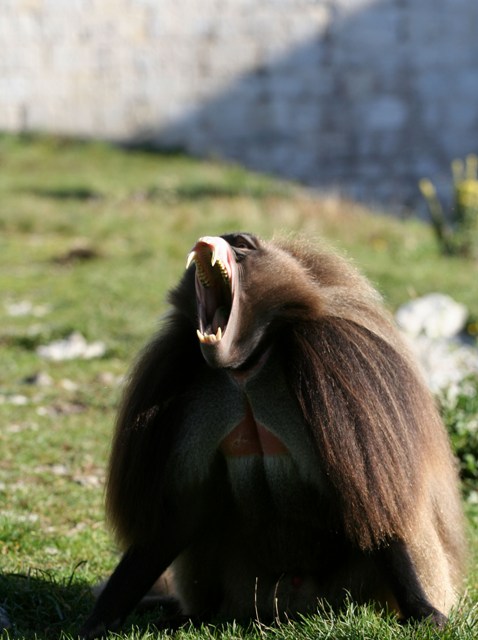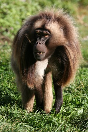 Malgré leur aspect impressionnant, ces grands singes (20 à 30 kg) originaires des hauts plateaux d’Erythrée et d’Ethiopie sont particulièrement pacifiques et ne mangent que de l’herbe (95 %), un régime tout à fait unique chez les primates.