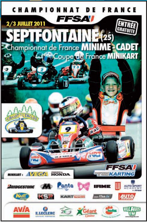Le Championnat de France Minime / Cadet comporte trois épreuves en 2011. Les 2 catégories présentes à Septfontaine rassemblent les meilleurs jeunes pilotes de l’hexagone, futurs champions au plus haut niveau dans le karting et sans doute les ténors de la compétition automobile de demain.