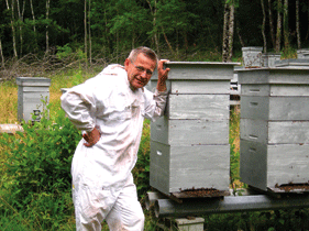 C.V. : De 15 à 20 000 l’hiver, pour monter à 50 000 l’été. Là aussi, il y a tout un travail à faire au niveau de la préparation pour disposer de beaucoup d’abeilles l’été. Plus il y a d’ailes, plus la récolte de miel sera bonne. Pour cela, il est indispensable au printemps de supprimer deux cadres usagés dans le corps de ruche et de remettre des cadres de cire gaufrée.