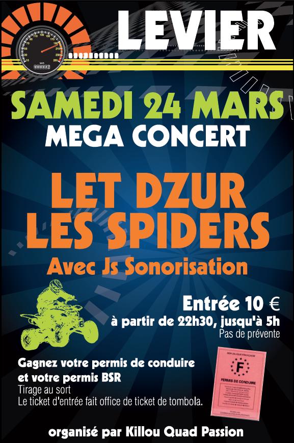 Au programme de cette soirée exceptionnelle, un concert du groupe Let dzur, orchestre composé de 5 jeunes originaire du Sauget, puis en deuxième partie le groupe Les Spiders qui ont fait leur grand retour et qui comme il y a 20 ans mettront une ambiance torride en reprenant de grands succès.