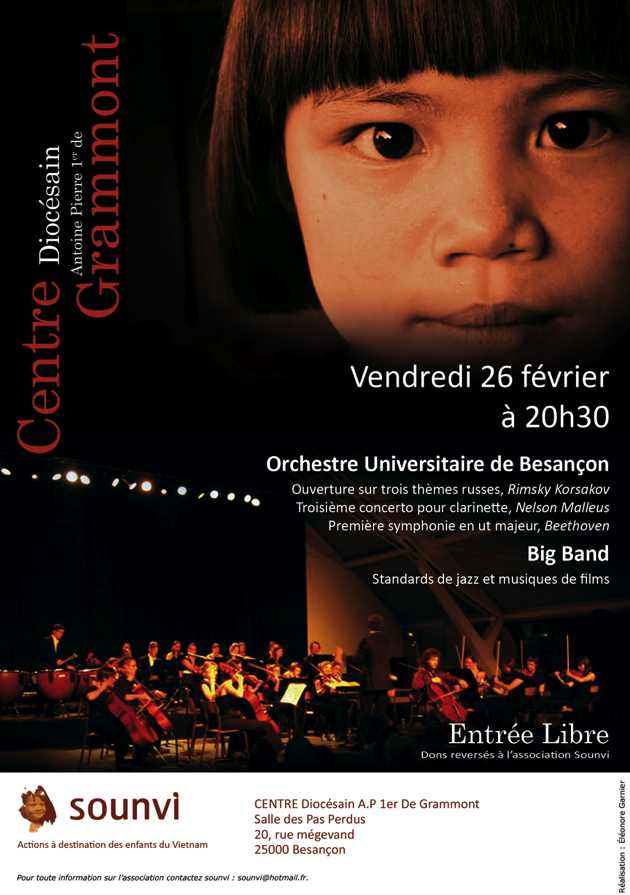 Concert en collaboration avec l’orchestre universitaire de Besançon et le Big Band. Le programme de l’orchestre :