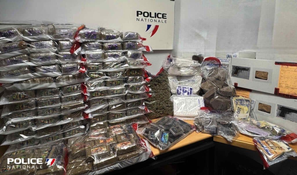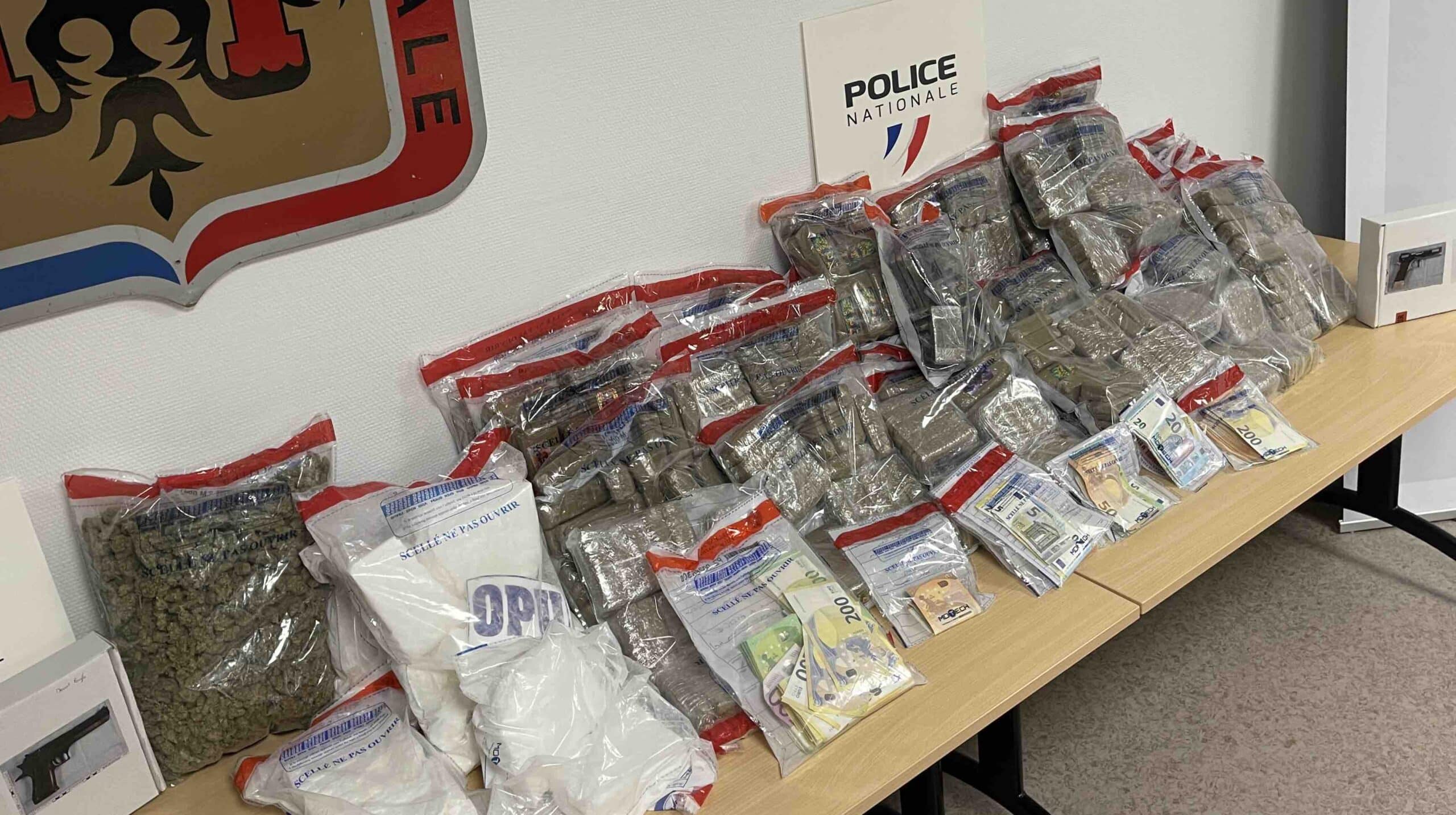 L’opération, centrée sur le quartier Les Clairs-Soleils à Besançon, a permis de démanteler une équipe structurée et de saisir des quantités importantes de drogues : 68,91 kg de cannabis, 5,70 kg d’héroïne, 8,84 kg de cocaïne et 998 g d’herbe de cannabis, ainsi que 73 215 € en liquide, un véhicule et deux armes de gros calibre, dont un pistolet semi-automatique Desert Eagle.