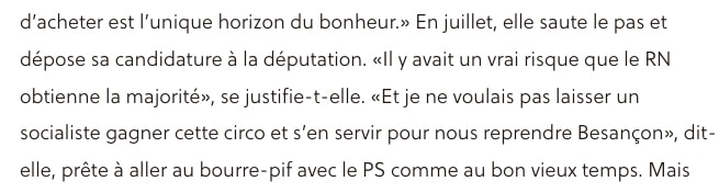 « Je ne voulais pas laisser un socialiste gagner cette circo et s’en servir pour nous reprendre Besançon ».