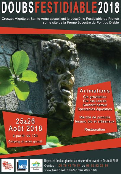 Le « Doubsfestidiable 2018 » est un événement qui veut favoriser les échanges entre plusieurs régions de France et la promotion de notre belle Franche-Comté à travers la mise en valeur de ce bel ouvrage qu’est le Pont du Diable, l’un des premiers sites classés en bénéficiant de la loi de protection de l’environnement et des sites remarquables dite « Loi Bauquier ».