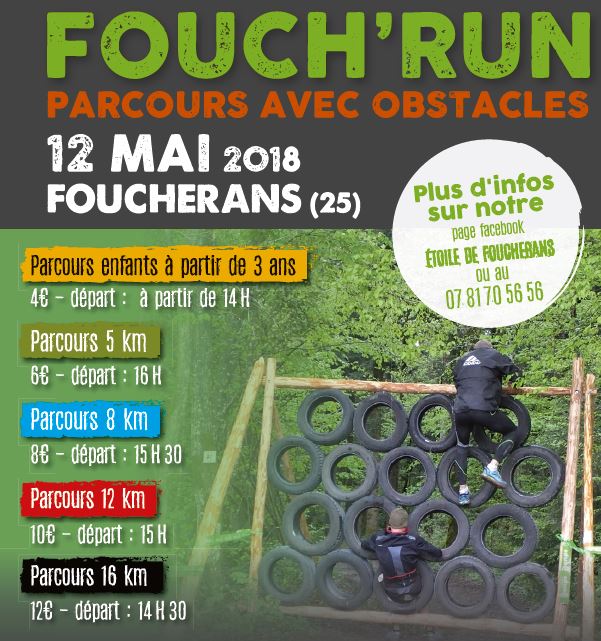 N’hésitez pas à venir nous rejoindre pour une journée sympathique et conviviale en plein air. Les inscriptions doivent avoir lieu avant le 5 mai. Les places étant limitées, il est préférable de vous inscrire le plus rapidement possible. Pour plus d’informations vous pouvez consulter notre page Facebook « Fouch’Run 2018 ».