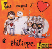 Selon Jean-Luc, ils ont choisi gémeaux “car avec tous les signes du zodiaque ça laisse de la marge pour faire d’autres albums”. Bonne idée et pleine d’humour ! Cela faisait déjà vingt ans que Jean- Luc, Didier et Vincent animaient des bals avec leur orchestre “Coups de Cœur”. Philippe quant à lui ‘donnait de la voix’ dans des soirées de fête entre amis, chantant Brassens ! De l’union de ces quatre amoureux de la chanson française à texte est né le groupe “Les Coups d’Cœur à Philippe”. A raison d’environ sept concerts par an et durant trois heures à chaque fois, ils vous font partager leur passion des textes remplis de messages : tantôt engagés, tantôt taquins ! Les chansons comme “Le Croupion” ou “le Blues du pochtron” composées par Jean-Luc ne vont pas à l’encontre de “Gare au Gorille” de Brassens ou de “Elle a vu le loup” de Renaud auteurs de référence du groupe et repris lors des concerts. Vous les découvrirez certainement dans des fêtes populaires, des salles de concert, des restaurants : partout où l’on peut s’entendre penser collectivement “c’est tellement vrai ce qu’ils disent !” Leur album est vendu sur les lieux de représentations ou en vous adressant à Jean- Luc Guerringue au 03 81 60 05 11.