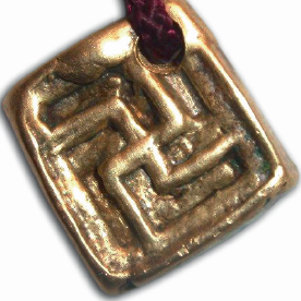 JC Bonnot : Cette croix gammée dont j’en ai fait un pendentif est une svastika, symbole rendu tristement célèbre car attribué de nos jours aux nazis. Mais je ne la porte pas pour cette raison. Alors avant tout amalgame, je tiens à préciser que je l’ai récupérée à Mandeure, site que je considère comme l’Alésia des Mandoubiens, chez un habitant qui en ignorait la signification ancienne. En effet en l’examinant de plus près, j’ai de suite compris qu’il s’agissait d’un objet archéologique de première importance vieux de 3000 ans. C’est un ex-voto qui représente la forme du soleil tournant sur lui-même. Objet de culte, de la plus ancienne religion du monde ; celle du «solis invictus», le soleil invaincu… Le soleil éternel brillant pour tout le monde était semble t’il une dévotion naturelle acceptée de tous. Comme ci de nos jours, la justice régnait sur le monde établissant la paix, mais là c’est une autre histoire (rire !). Ce signe universel a toutefois été récupéré à dessein par le IIIe Reich, afin d’être identifié à ce culte originel pour légitimer son idéologie, le Nazisme se voulant religion !
