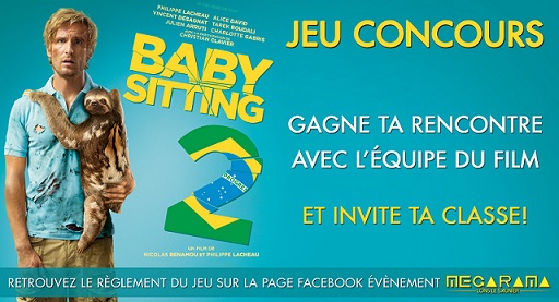 Il vous suffit de nous envoyer votre candidature et votre projet avant le 25 octobre 2015 à 18h par mail à megarama.lons@gmail.com (objet : Babysitting 2). Un évènement Facebook a été crée sur notre page « Avant-première BABYSITTING 2 ». Le groupe gagnant sera avisé avant le 10 novembre. Tous les membres devront être présents à partir de 15H30 au cinéma MEGARAMA Lons-le-Saunier. Les 15 groupes suivants pourront bénéficier d’un tarif préférentiel pour assister à l’avant-première.