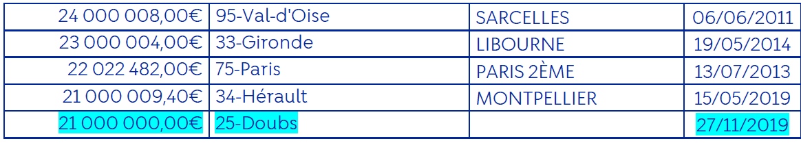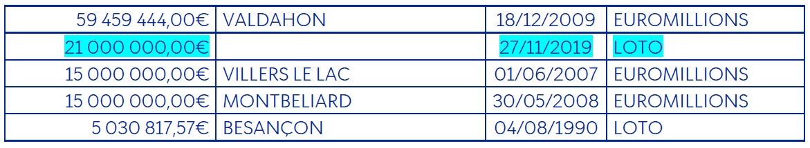 Top 5 des plus gros gains remportés dans le département du Doubs :