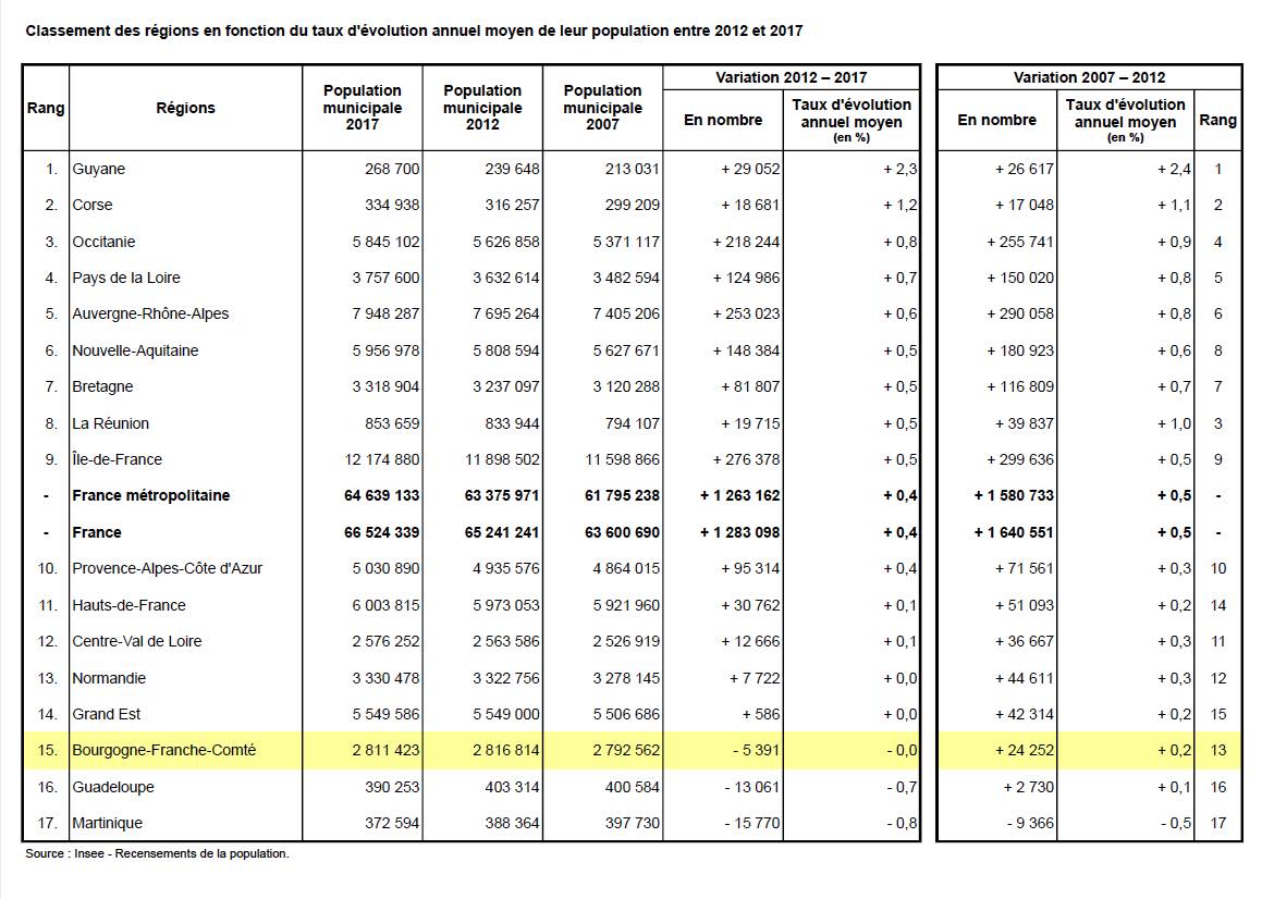 Entre 2012 et 2017, la région perd de la population.