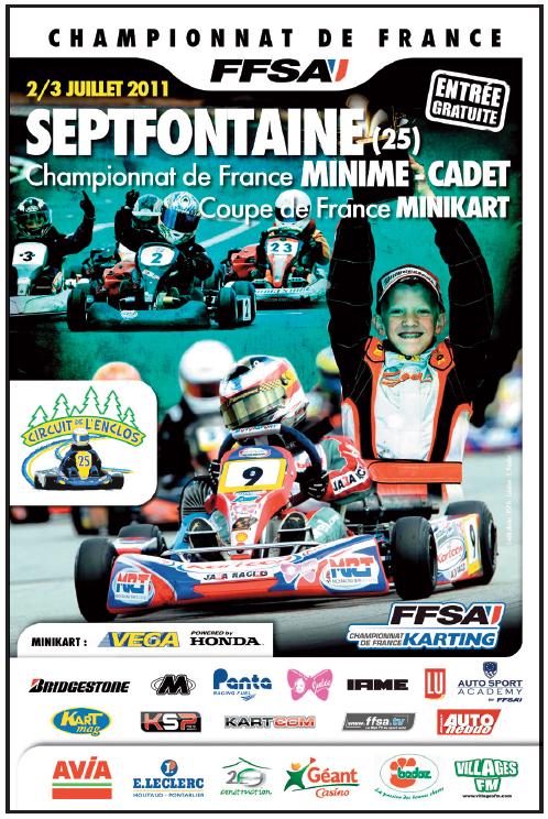 La FFSA (Fédération Française du Sport Automobile) et l’ASK de l’Enclos organise les : 2 et 3 juillet 2011 la deuxième épreuve de Championnat de France minime/cadet Karting et la Coupe de France Minikart sur le Circuit de l’Enclos.