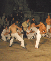 Depuis la création de l’association Ritmo da Capoeira, en novembre 2003, le terme de « capoeira » est devenu plus familier aux Francs-Comtois. Cette association a organisé de nombreuses manifestations. Ainsi, des fêtes de quartier à Besançon aux interventions dans les centres aérés du Doubs, en passant par le spectacle « Os Ritmos da Capoeira » joué lors des Rencontres Jeune Création 2004 à Besançon, les capoeiristes bisontins sont de tous les combats. L’entrain et le dynamisme de l’association sont à l’image de son professeur, Coxinha, qui transmet son plaisir de l’effort avec le sourire.Originaire du Brésil, Coxinha compte dix-neuf années de pratique dont onze au sein du groupe Senzala, un des groupes les plus connus au Brésil et implanté dans une quarantaine de pays. C’est au sein de ce groupe qu’il a obtenu en 1998, sa corde de professeur. Il faut rappeler qu’un professeur de capoeira ne doit pas simplement maîtriser une technique. Il s’engage également à véhiculer les valeurs qui font de cette pratique une vraie culture « . Il n’y a jamais de conflit, on ne porte pas les coups. Les enchaînements servent seulement à montrer à l’adversaire qu’on peut le mettre en échec. La capoeira est un vraie philosophie de la vie » souligne Professeur Coxinha.La capoeira est en effet un des aspects les plus séduisants de la culture brésilienne, car elle est un mélange de danse, lutte, chorégraphie, acrobaties et musique. Elle fascine d’autant plus que son histoire se confond avec celle du Brésil. Arrivée sur le « nouveau continent » au 16ème siècle sous la forme d’une lutte, elle s’est développée comme une danse et un art de combat à part entière. La danse allait permettre aux esclaves de s’entraîner au combat sans attirer l’attention des négriers.