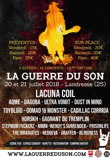 La soirée débutera avec CADILLAC CORRIDA qui ouvrira ce deuxième jour avec un rock aux tons puissants, grisonnants et harmonieux. Déjà venu jouer en 2010 à La Guerre du Son, AQME nous fait le plaisir de revenir sur la scène pour cette édition 2018.