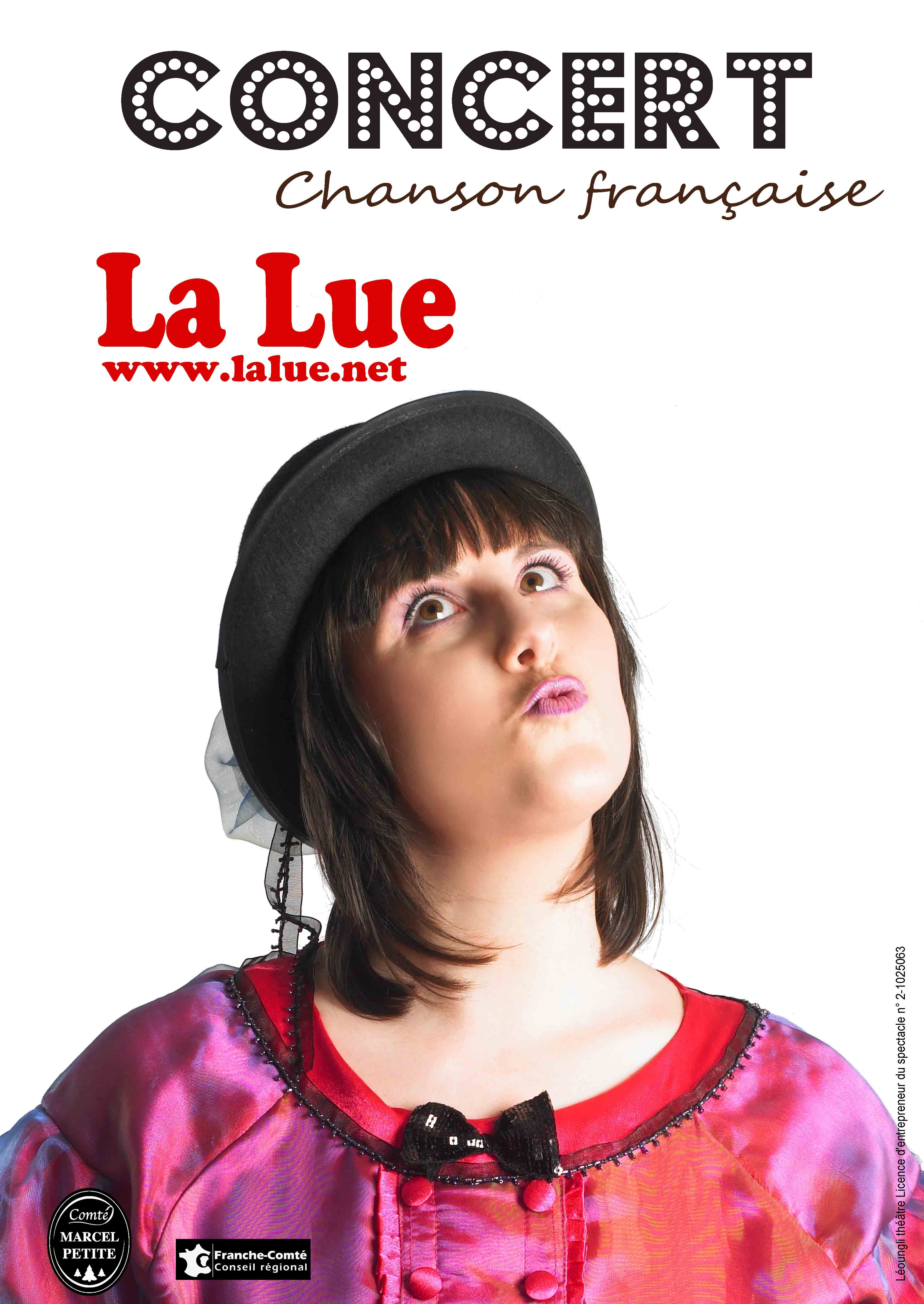 La Lue, auteur-compositeur et interprète a su réunir autour d’elle 3 musiciens et un comédien-imitateur à l’humour décapant ! Un univers inspiré par Lemay, Brassens, Réggiani…à découvrir absolument !Entrée 10 euros et 5 euros en tarif réduit