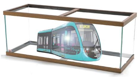 Faire aimer le tram vite ! Donner aux Bisontins l’envie de serrer les poings et de patienter jusqu’à la première rame. Pour les aider un peu, cette belle maquette grandeur nature offerte par CAF (le fabricant espagnol du tram) sera exposée en pleine rue, en face du pont de la République. Mais un cadeau à 300 000 € ça se protège. La maquette sera donc présentée… dans une cage de verre.
