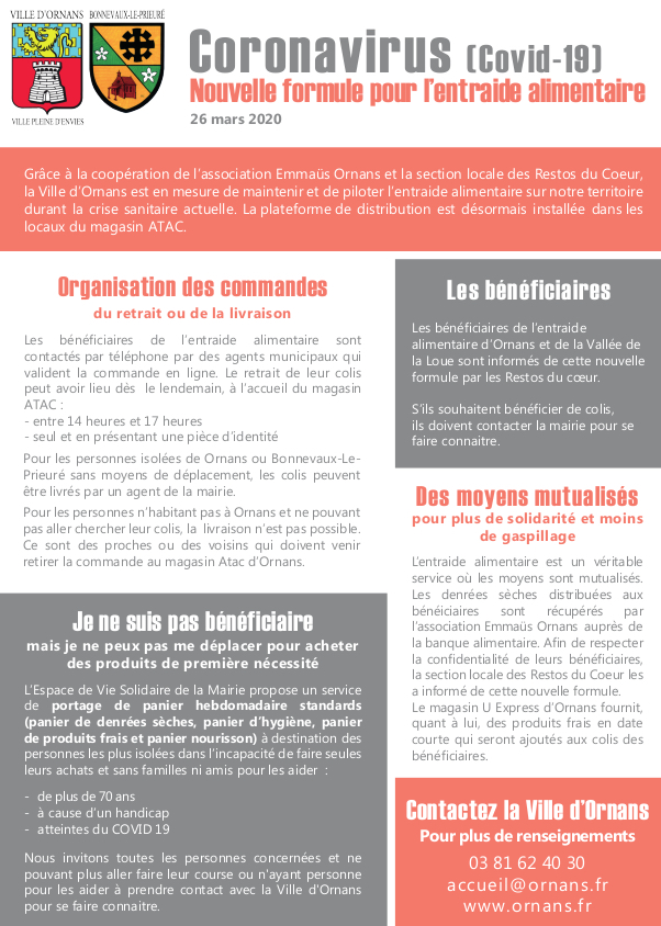 - prend en charge la conception et la livraison des paniers hebdomadaires aux personnes fragiles ou isolées d’Ornans (projet piloté par la cellule de Crise Covid-19 de la Ville d’Ornans)