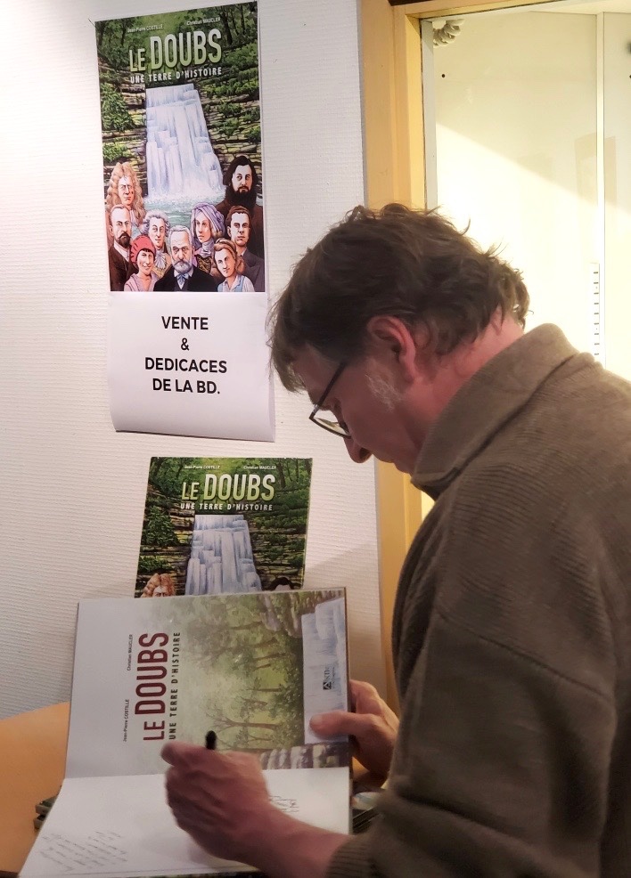 Pour les besoins du la bande dessinée sur le Doubs, le dessinateur cherchait donc un historien compatible, « et c’est par le copain d’un copain d’un copain que j’ai contacté Jean-Pierre« , raconte-t-il. Ce fut l’opportunité pour M. Costille de s’essayer au métier de scénariste. Pour lui une échappée. Toutefois réclamé pour ses compétences, celui-ci est intervenu pour la partie préparatoire à documenter de précisions historiques et la réalité visuelle dans une époque. Laquelle réalité devait inspirer l’illustration à Christian Maucler.
