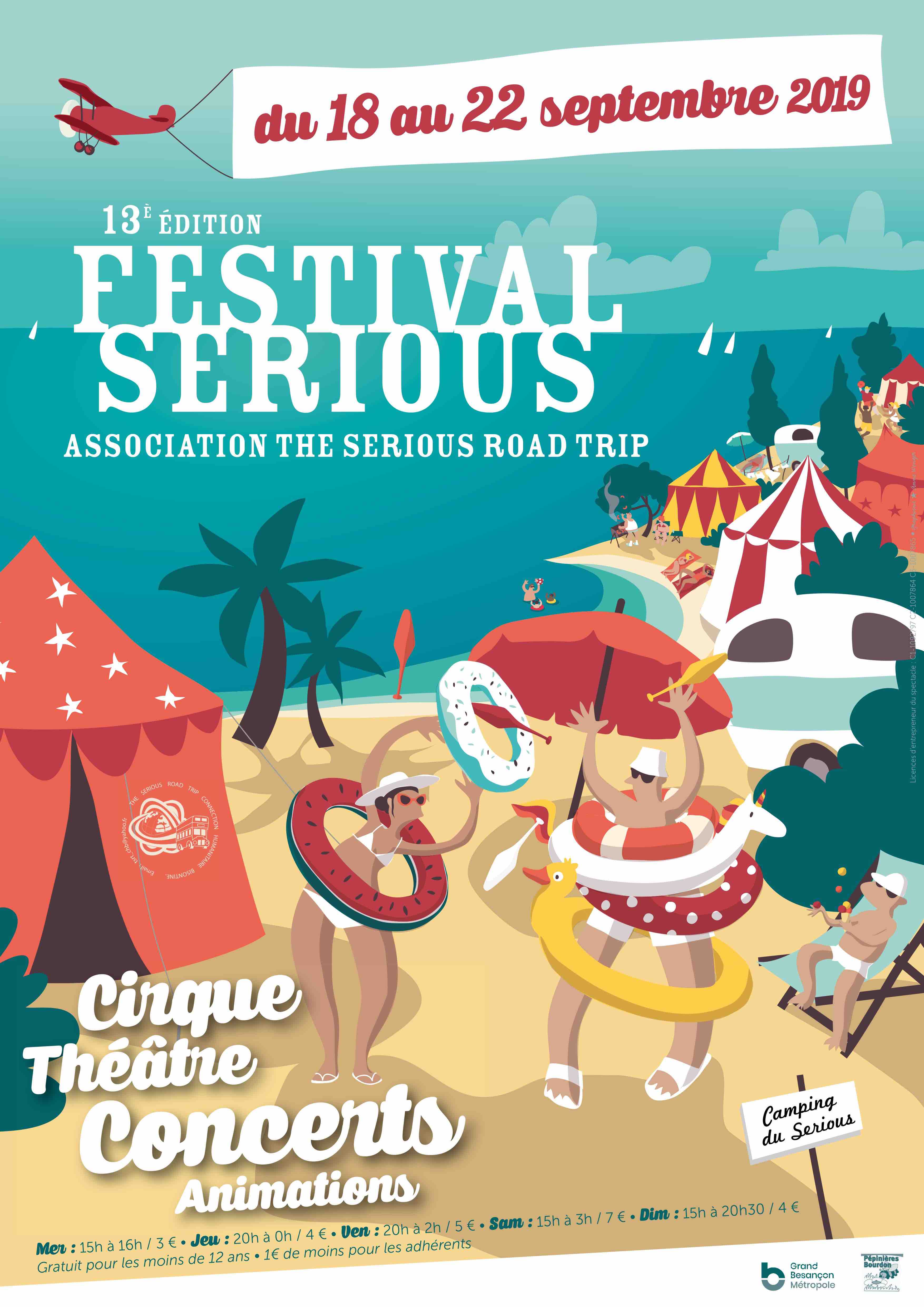 Le festival Serious 2019 Après une année de « repos » bien mérité, l’équipe du Serious est ravie de vous accueillir dans son camping 4 étoiles pour la 13ème édition du FESTIVAL SERIOUS du mercredi 18 au dimanche 22 septembre à Avanne.