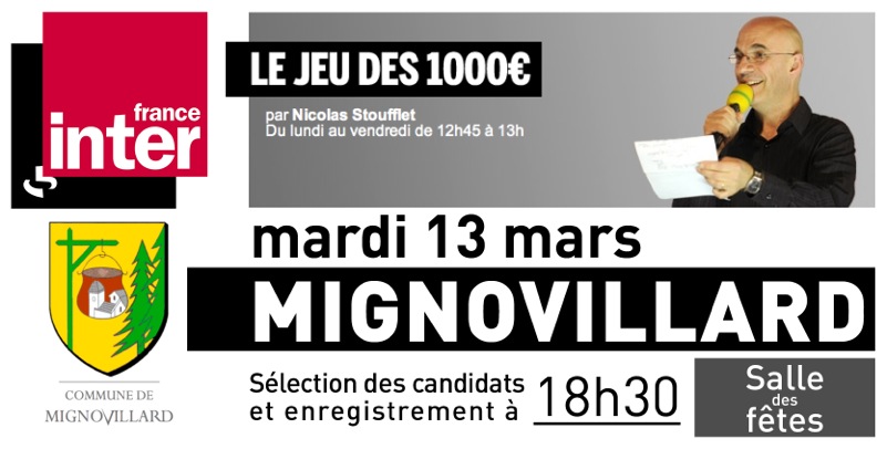 L’enregistrement du « Jeu des 1 000 € » est une occasion exceptionnelle pour Mignovillard et le Jura de faire mieux connaitre leurs atouts et leurs spécificités aux très nombreux auditeurs du jeu le plus ancien de la radio française.