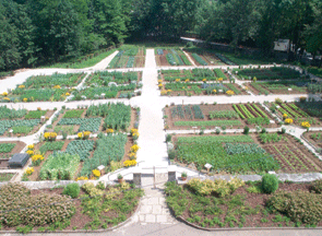 Composé de 67 légumes et de 120 variétés de fleurs et plantes, avec ses couleurs chatoyantes et sa composition basée sur une symétrie parfaite, le potager privilégie la délectation esthétique au détriment de la productivité. A ce plaisir de la perception, vient s’ajouter celui du palais. Deux fois par semaine, de mai à octobre, et dans les conditions d’un marché traditionnel, les légumes récoltés sont distribués gratuitement par l’équipe en charge du potager à tous les employés de la structure. Cette distribution gratuite (soit neuf tonnes de légumes par an) relève de l’accompagnement social et permet à chacun d’améliorer la gestion de son budget et de son alimentation, par le fruit de son propre travail …ou celui de son collègue !