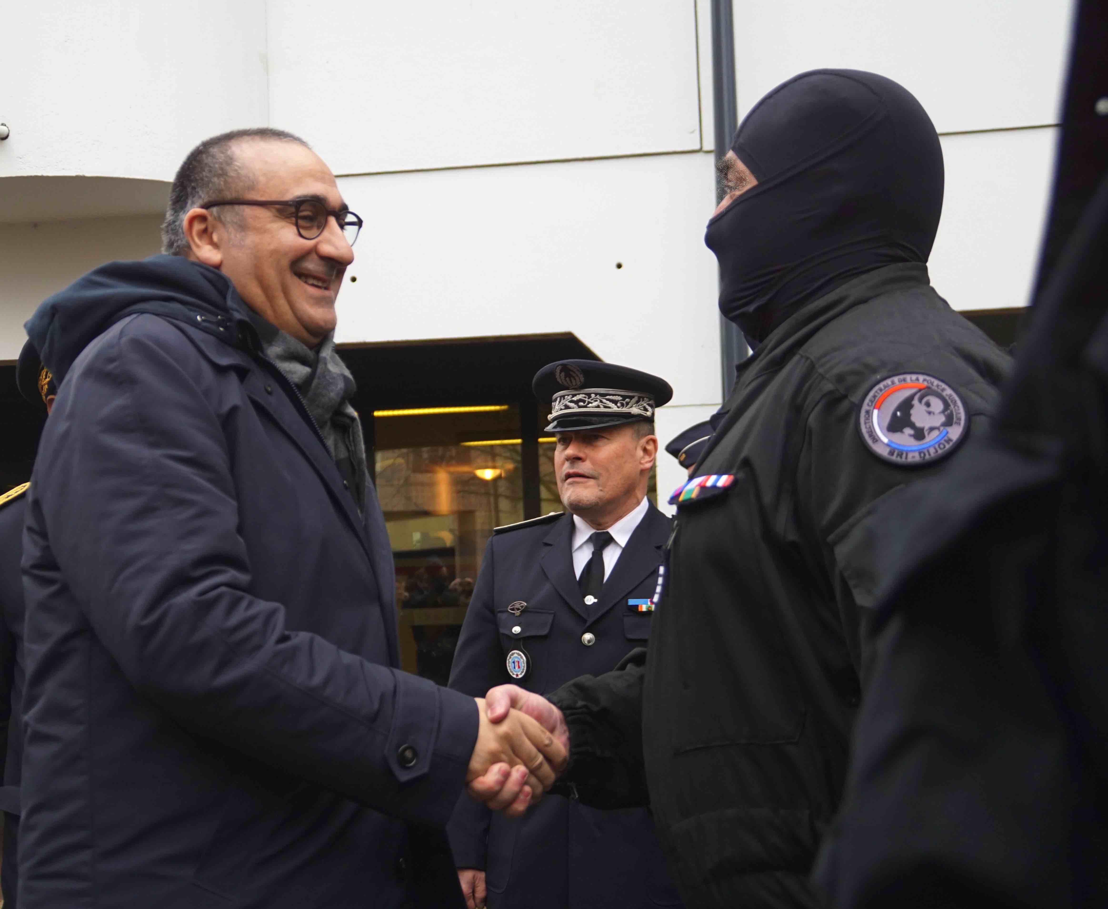 Après une brève visite du site et une présentation des effectifs, il a ensuite échangé avec des commerçants locaux impactés par les derniers incidents.