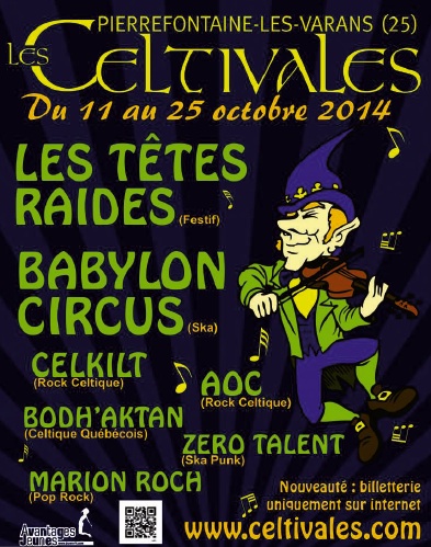 Vont se succéder sur scène Celkilt, groupe finaliste de l’émission de M6, « La France a un incroyable talent », AOC (Appellation d’Origine Celte), une touche rock, une touche celtique, des compositions, des reprises, puis la locale de l’étape : Marion Roch ! Vous aurez également le plaisir de découvrir Zéro Talent (ne vous fi ez pas à leur nom) : du ska, du punk, du reggae, des paroles en français… Les québécois Bodh’aktan, apporteront par leur accent inimitable et leurs chansons festives et celtiques, une bonne dose de bonne humeur !