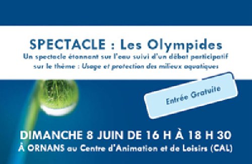 Entre théâtre, vidéo, conférence loufoque et chansons sur l’eau, le spectacle Les Olympides expose de façon humoristique les enjeux liés à l’eau et les différentes visions que peuvent en avoir les acteurs concernés : consommateurs, élus, associations, industriels, agriculteurs, amoureux de la nature, services de l’Etat, etc…