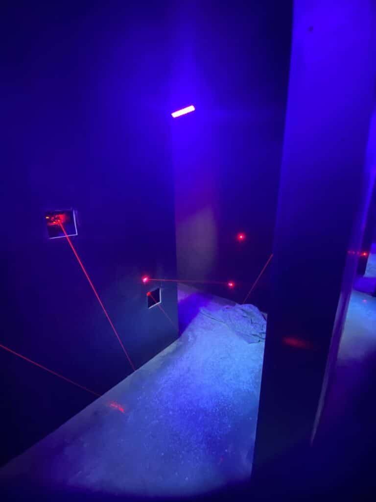 « Ce sont des rayons lasers à éviter, c’est un jeu qui vient d’être mis en place, c’est scénarisé. Il y a des peintures au mur… Vous avez un chrono qui tourne et vous devez passer toutes les étapes avant le temps imparti ! » nous précise Sylvain.