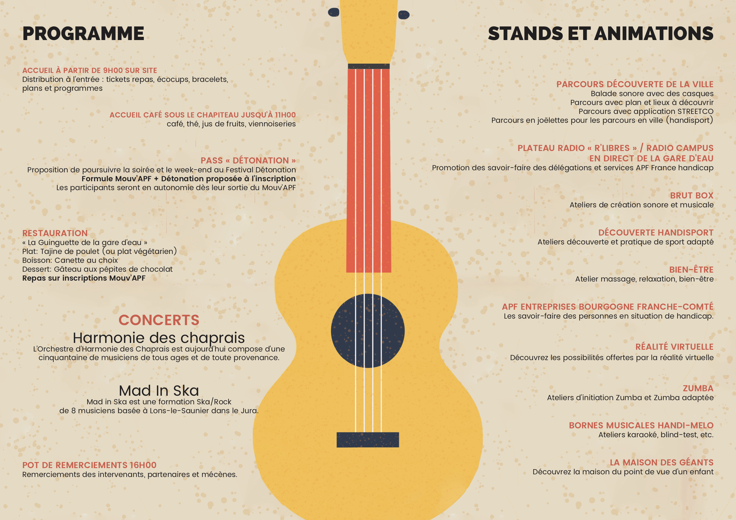 Au programme : concerts gratuits avec Mad In Ska et l’Harmonie des Chaprais, village associatif autour de la musique et des savoirs faires APF France handicap, émission de radio avec Radio Campus Besançon
