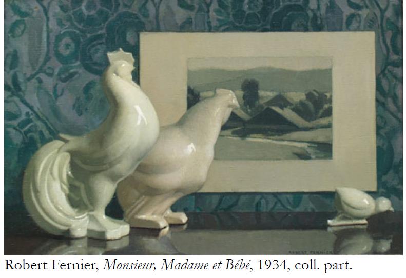 Progressivement, chacun se dégage de cette influence commune et élabore des oeuvres plus personnelles. Fernier réalise dans les années 1930 une jolie série de natures mortes très intimes, teintée d’humour et d’une certaine sentimentalité. Il considèrera la pratique de ce genre comme un élément indispensable à l’apprentissage de la peinture. Charigny réalise de plus de en plus de natures mortes, sous l’influence conjuguée d’une importante demande commerciale et de recherches personnelles sur la couleur. Les fleurs constituent son sujet de prédilection à la fin de sa vie. Jouffroy quant à lui nourrit pour ce genre une passion sans borne. Teintées à la fois de tradition, d’hyperréalisme et de spiritualité, les natures mortes de Jouffroy expriment sa conception de la peinture et de la vie.
