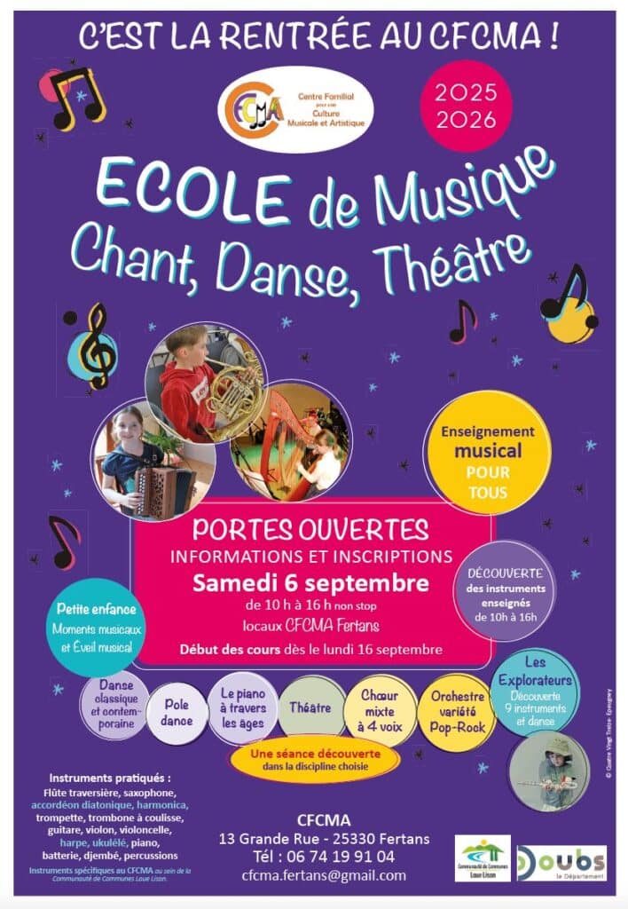 Le CFCMA (Centre Familial pour une Culture Musicale et Artistique) ouvre ses portes le samedi 6 septembre 2025.