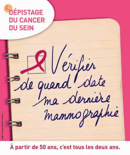 Pourtant, détecté à un stade précoce, il peut non seulement être guéri dans plus de 90 % des cas mais aussi être soigné par des traitements moins agressifs. Actuellement, malgré les progrès réalisés dans les traitements, le dépistage constitue toujours l’une des armes les plus efficaces de la lutte contre le cancer du sein. Aujourd’hui, une femme sur trois ne se fait toujours pas dépister ou pas régulièrement. Si l’existence du dépistage organisé du cancer du sein est largement connue du grand public, la participation semble avoir atteint un plateau. Cette situation justifie la poursuite des efforts d’information et de sensibilisation, notamment auprès des femmes les plus touchées par les inégalités de santé territoriales, socio-économiques et/ou culturelles.