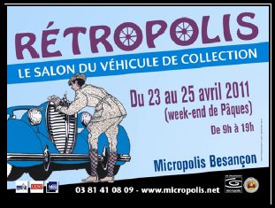 En Franche-Comté, au cœur du berceau de l’automobile, Micropolis Besançon organise en partenariat avec l’association « Passionnés de Véhicules Anciens » (PVA) le salon Rétropolis. Cet événement est aujourd’hui un incontournable de l’univers du véhicule de collection de la région. Il y aura de quoi s’occuper les yeux et l’esprit. Cette édition est encore plus riche que la précédente avec plus de 300 véhicules sur 12 000 m² dans des halls sécurisés, éclairés et chauffés. Rétropolis 2011 s’annonce comme une grande cuvée en ce week-end de Pâques ! Des passionnés