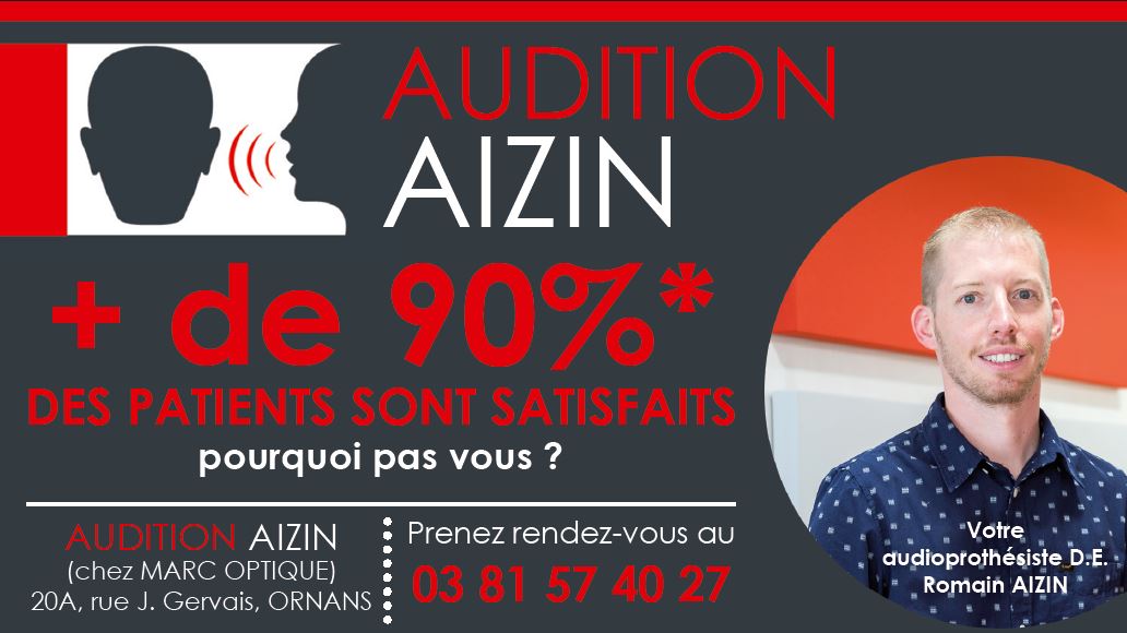 Romain Aizin fait partie de la société Audition Morel, située à Pontarlier. Depuis 2008, il s’est installé, dans les locaux de Marc Optique, rue Jacques Gervais à Ornans, où il reçoit sa clientèle deux jours par semaine. Véritable technicien de santé, Romain a pour mission de trouver la solution la plus adaptée à une perte auditive. Il accompagne la personne qui souhaite se faire appareiller dans le choix du type d’appareil et du modèle en prenant en compte les critères de budget et de confort de chacun. Ensuite, il conçoit les parties sur-mesure et procède aux réglages numériques des appareils auditifs pour aider le patient à retrouver une capacité d’écoute optimale le plus rapidement possible.