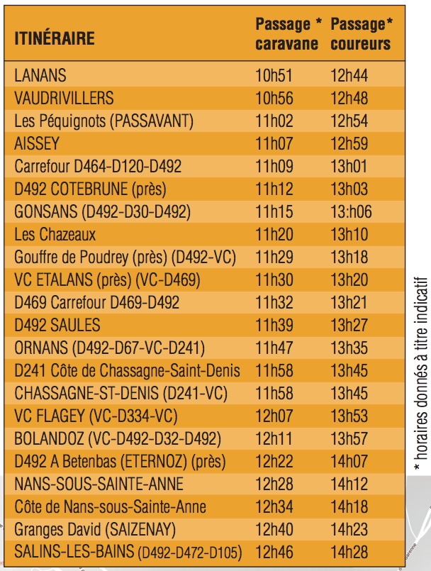 Le 12 juillet pour l’étape 7 (Belfort > Chalon-Sur-Saône) vous vivrez au cœur du village du Tour, à bord de la caravane, la traversée des vallées de la Loue et du Lison et le détail de toutes les animations festives.