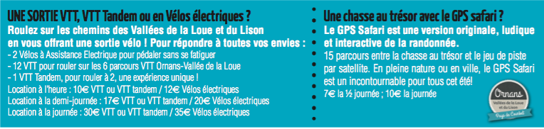 Ces animations sont organisées par la Communauté de Communes Amancey Loue Lison et sont proposées gratuitement à tout public. Les places étant limitées, il est préférable de s’inscrire au préalable. Les réservations se font auprès de l’Office de Tourisme du Pays d’Ornans Loue Lison : 7 rue Pierre Vernier à Ornans contact@ornans-loue-lison.com – 03 81 62 21 50