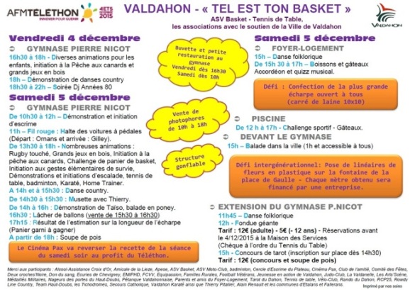Vous pouvez dès à présent retirer votre place à la Maison des Services pour participer au repas qui aura lieu le samedi 5 décembre à midi dans l’extension du gymnase Pierre Nicot. Il s’agit de la traditionnelle fondue géante. Tarif : 12€ (adulte) – 5€ (- 12 ans) – (Chèque à l’ordre du Tennis du Table) – Places disponibles jusqu’au 3 décembre à 17h.