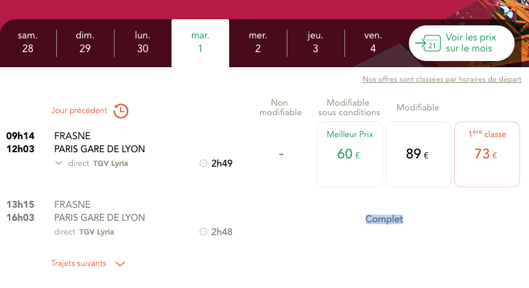 La Députée du Doubs signale que « de nombreux usagers m’ont précisé la complexité de ces réservations dans la mesure où le site internet accessible aux clients affiche la mention « complet » même plusieurs mois à l’avance ». Cette situation interroge vivement puisqu’il est possible dans ces cas précis d’acheter des billets au départ ou à l’arrivée de Lausanne ou de Vallorbe.