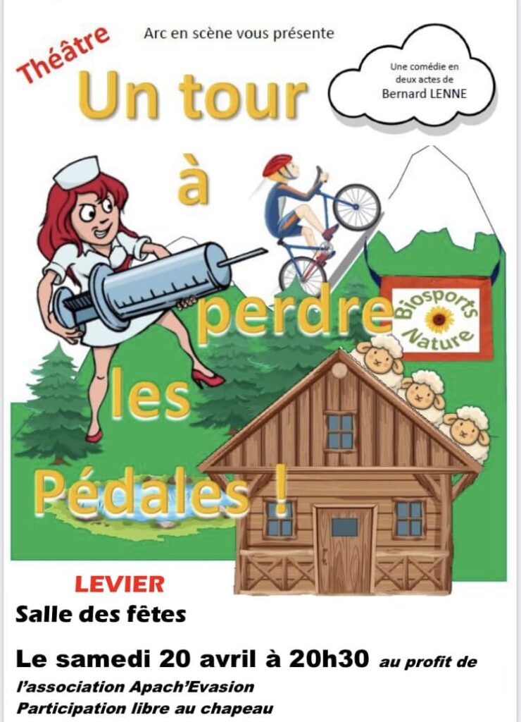 Avec la pièce « Un tour à perdre les pédales » de Bernard Lenne à la salle des fêtes de Levier à 20h30.