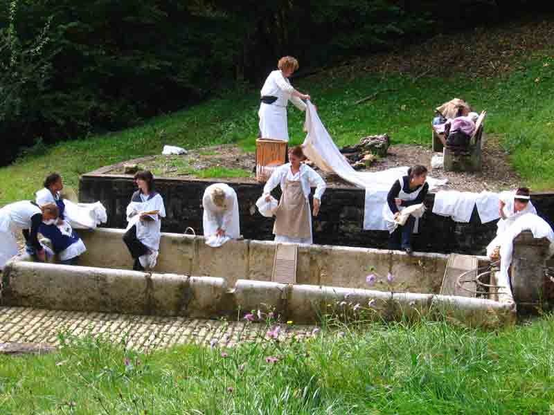 Cette pièce de 1h30, raconte l’histoire de 9 femmes qui parlent en travaillant de leur ménage, de leurs hommes, de leurs grossesses voulues ou non, des bruits de Paris, des patrons, des patronnes, de l’Amérique. Pas de miracle, il faut savonner, frotter, brosser, rincer dans cette eau glacée, battre, rincer, encore. Leur peau est gercée, leurs doigts fripés. Au café du village, les hommes jouent parfois les vantards, les durs ou les innocents. Au lavoir, ils ne s’y risquent pas, ce lieu leur est interdit. Aucune pudeur n’est possible, aucun masque ne résiste.