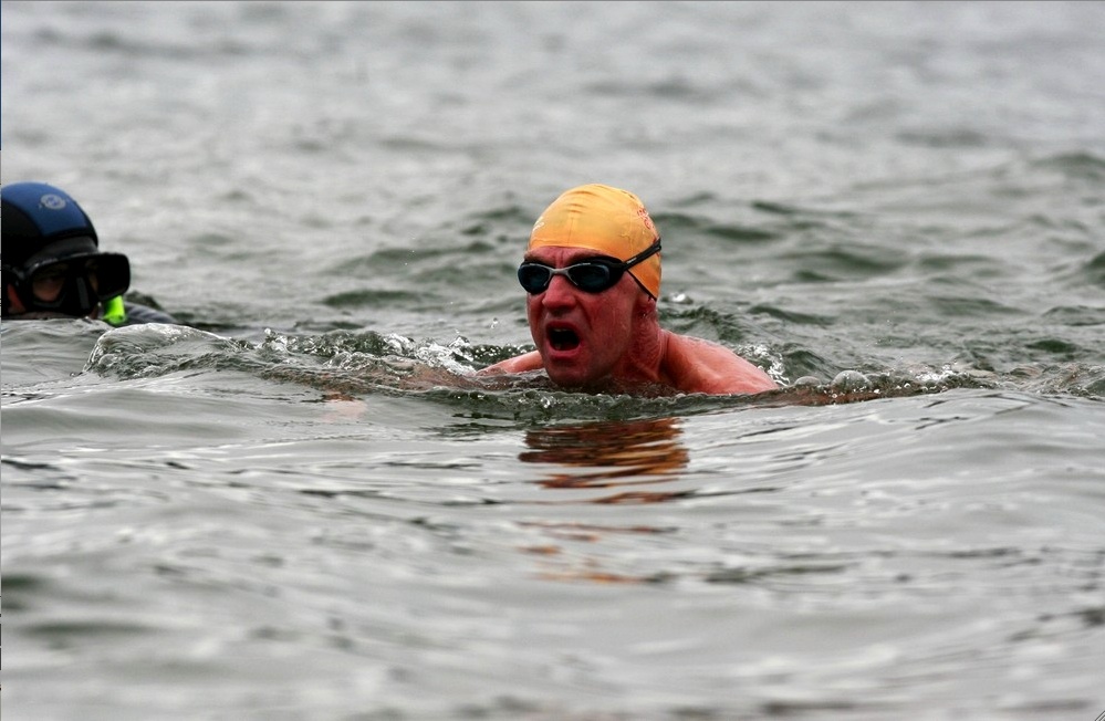 -11h30 : la traversée du lac. À l’arrivée sur la plage, Christophe sera attendu par deux nageurs, tous les trois enfileront une veste polaire Nausicaa et ils parcourront une boucle de quelques kilomètres à travers Malbuisson.