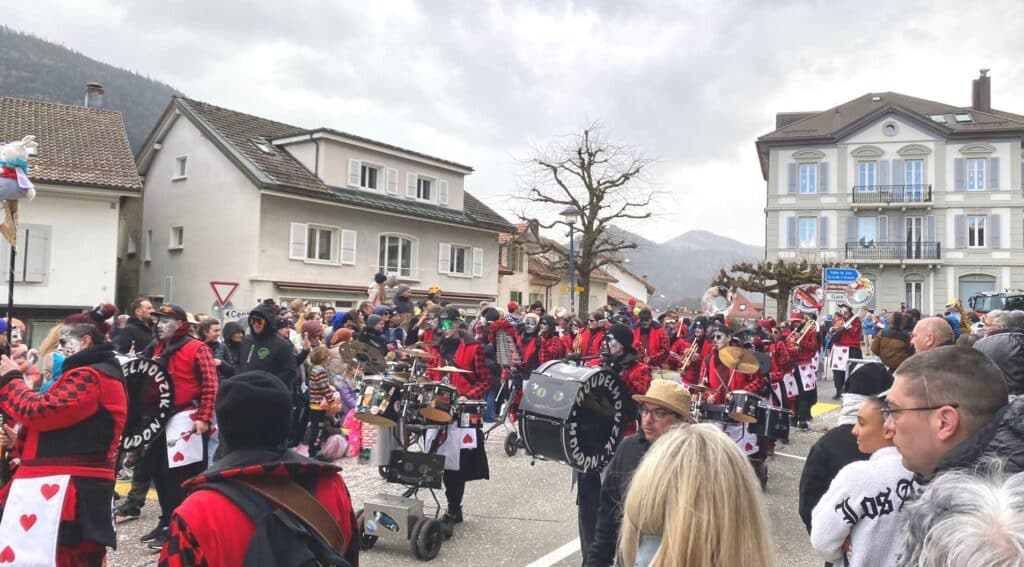 Les rues de Vallorbe ont vibré au rythme joyeux du défilé de chars, véritables œuvres d’art éphémères, façonnées avec passion par les associations locales et les classes d’école et des fameuses Guggenmusik.